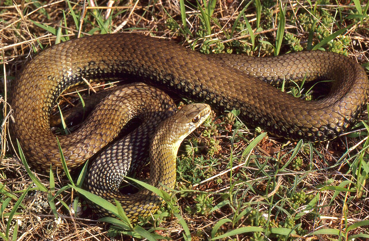 C’est le plus grand serpent de France, pouvant dépasser 2 mètres. Elle possède un regard “sévère” dû à une arcade sourcilière proéminente. Bien qu’elle soit venimeuse, ses crochets sont situés très au fond de la gorge (opisthoglyphe), ce qui la rend inoffensive pour l’homme si on ne cherche pas à la manipuler. Elle est très utile pour réguler les populations de rongeurs et de lézards.