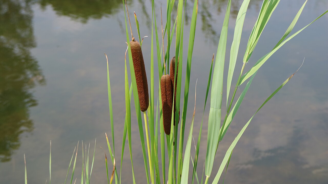 Souvent appelée à tort ‘roseau’, on la reconnaît à son épi floral brun et cylindrique qui ressemble à un cigare ou une saucisse. C’est une plante filtrante très efficace qui purifie l’eau. Ses tiges servent de refuge à la petite faune aquatique.